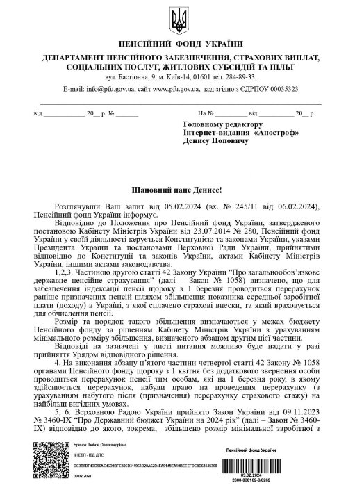 "Розмір та порядок збільшення визначаються в межах бюджету ПФУ за рішенням Кабміну з урахуванням мінімального розміру збільшення. Відповіді на питання можна буде надати у разі прийняття урядом відповідного рішення".