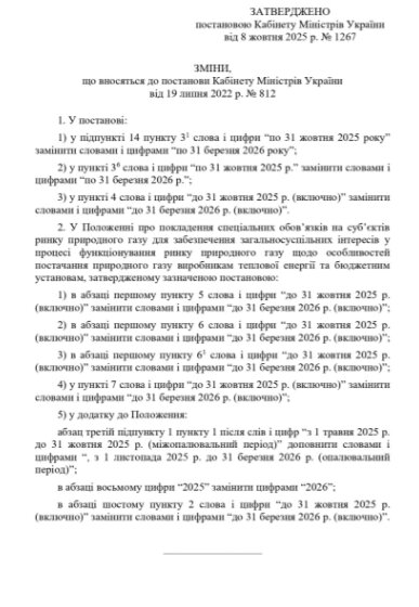 Для реалізації цього рішення уряд вніс зміни до чинних правил газопостачання для виробництва теплової енергії, зробивши нові терміни обов'язковими для всіх регіонів України.