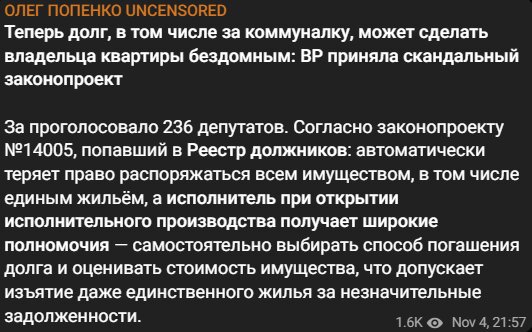 Документ, підтриманий 236 народними депутатами, запроваджує новий механізм: після внесення людини до Єдиного реєстру боржників він автоматично втрачає право розпоряджатися будь-яким своїм майном.