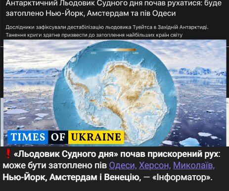 Вчені фіксують прискорення руху льодовика Туейтса в Антарктиді, однієї з найбільших та найнебезпечніших крижаних мас на планеті. Через потенційний вплив на глобальний рівень моря цей льодовик часто називають «льодовиком Судного дня».