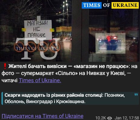 ПідписатисяСитуацію зафіксовано у різних районах Києва, включаючи Позняки, Оболонь, Нивки, Виноградар, а також у прилеглих селищах, таких як Крюківщина. У деяких випадках магазини спочатку намагалися працювати на генераторах, але обладнання не впоралося з тривалим навантаженням та нестабільною напругою.