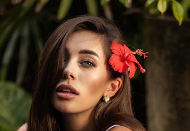 Пляжне вбрання вона доповнила витонченим золотим ланцюжком і квіткою у волоссі, додавши образу нотку острівної романтики.