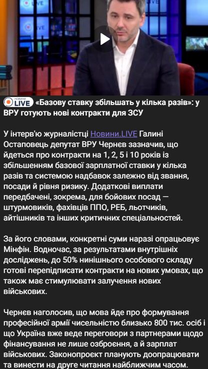 Верховная Рада готовит новые условия контрактов для службы в Вооруженных Силах, направленные на привлечение и удержание персонала, как заявил депутат ВРУ Чернев.