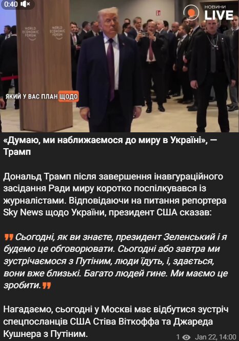 «Мы скоро уладим еще одну войну», — Трамп о войне в Украине», - говорится в сообщении.