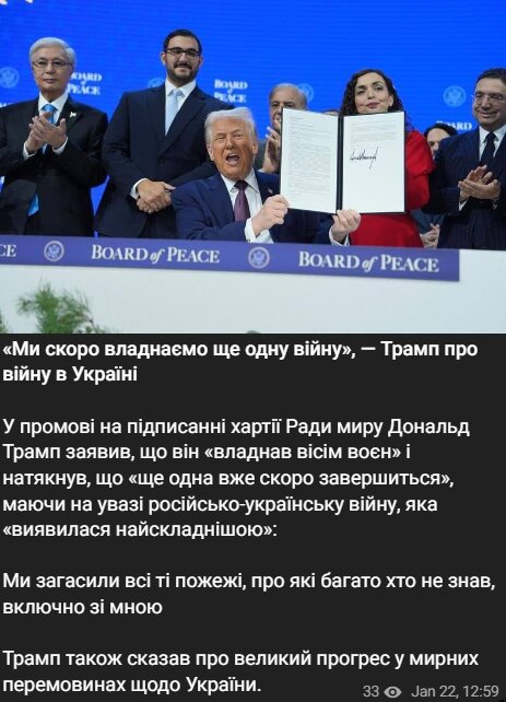 Президент США Дональд Трамп прокомментировал продолжающуюся войну в Украине во время мероприятия, посвященного подписанию устава «Совета мира».