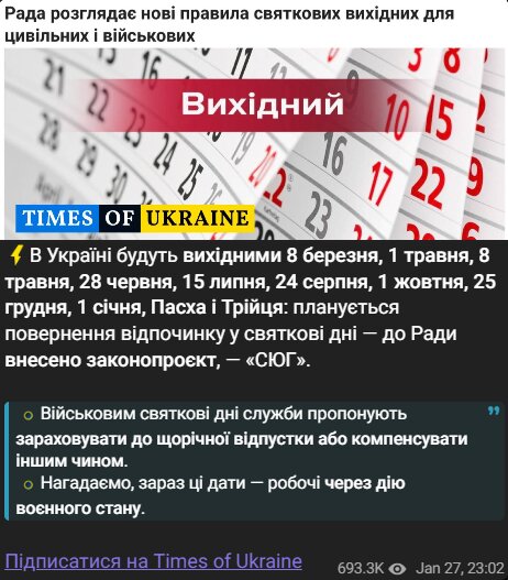 В случае принятия, украинцы снова получат официальные выходные дни в важные государственные, религиозные и памятные даты.