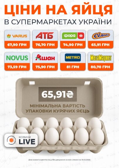 Самые низкие цены за десяток яиц недавно были зафиксированы в магазинах Сильпо (65,91 грн) и Варус (67,90 грн). В то же время покупатели платят больше в МегаМаркет (80,70 грн) и Метро (81 грн).