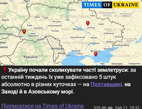 В Украине за прошедшую неделю наблюдается заметный рост сейсмической активности: в разных частях страны зафиксировано пять землетрясений. Подземные толчки были обнаружены в Полтавской области, нескольких западных областях и в районе Азовского моря.