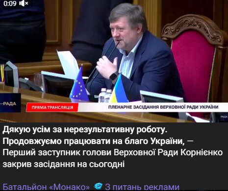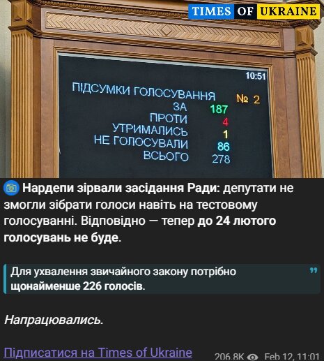 Тем временем первый заместитель председателя Верховной Рады объявил о закрытии заседания на сегодня, заявив, что работа продолжится позже. По предварительной информации, пленарное голосование не ожидается до 24 февраля.