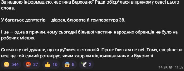 «Часть нардепов обоср*лась в прямом смысле этого слова. У многих — диарея, рвота и температура 38, — СМИ»