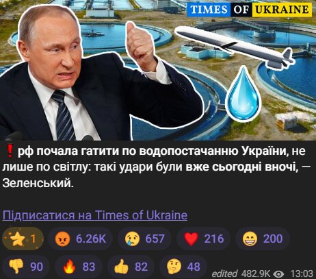 Украина столкнулась с отключения не только света, но и проблемами в водоснабжении из-за недавних российских ударов, сообщил президент Владимир Зеленский.